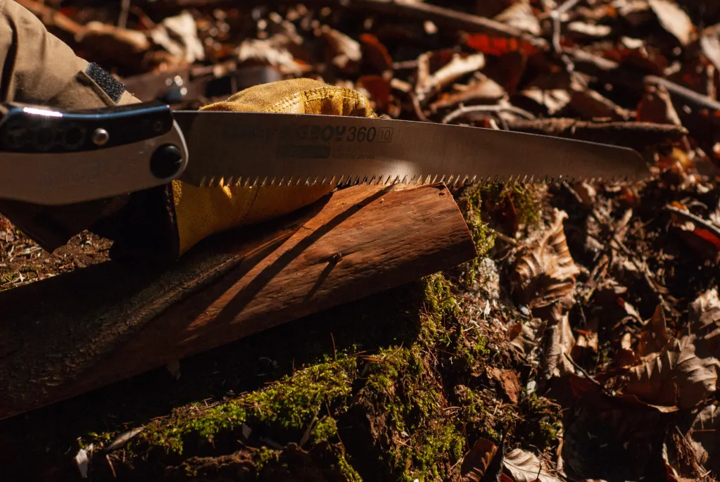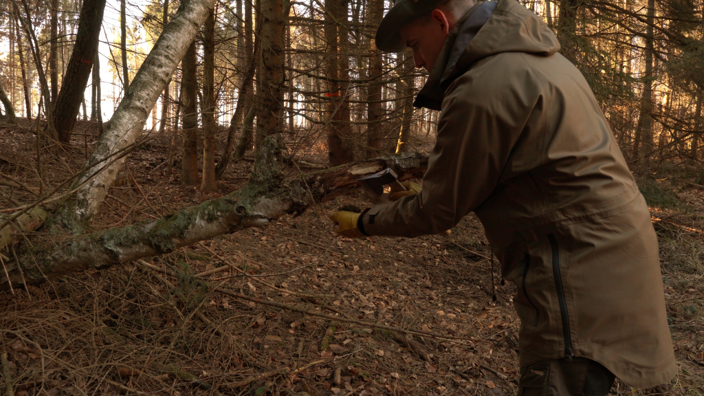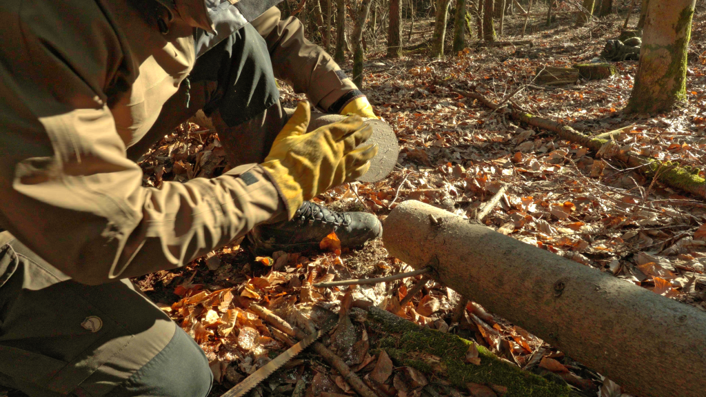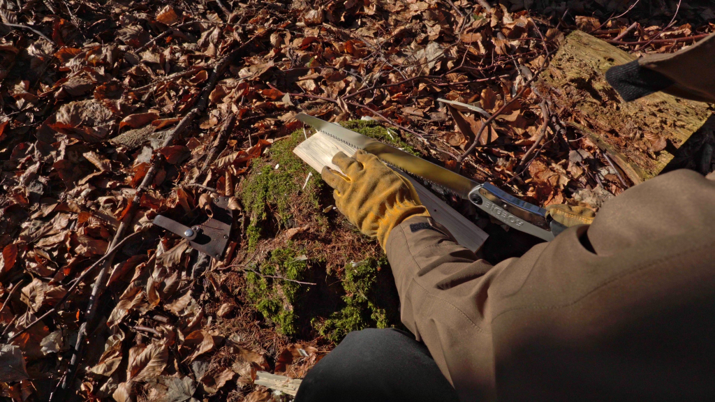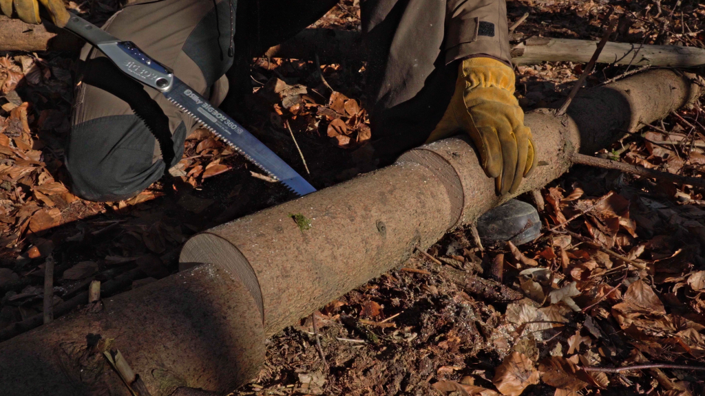 For this, you can do the rough preparatory work with the saw by cutting a triangle. Then the opening is worked out a little more with the axe. But you can do that at will.