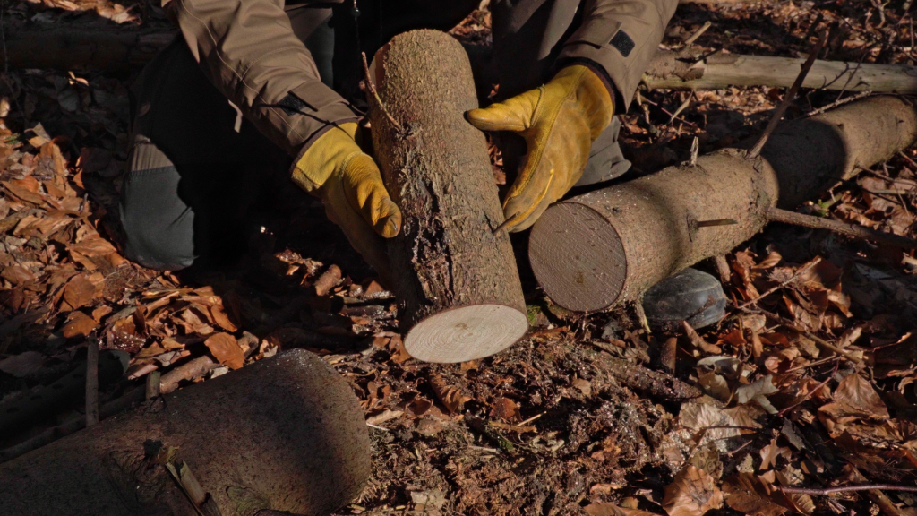 It is best if the part of the tree trunk is suspended in the air, i.e. not touching the ground. If you knock on wood, you can already tell from the sound how much moisture is still to be expected in the wood or how strong the decomposition process has already progressed. A bright sound is usually auspicious.