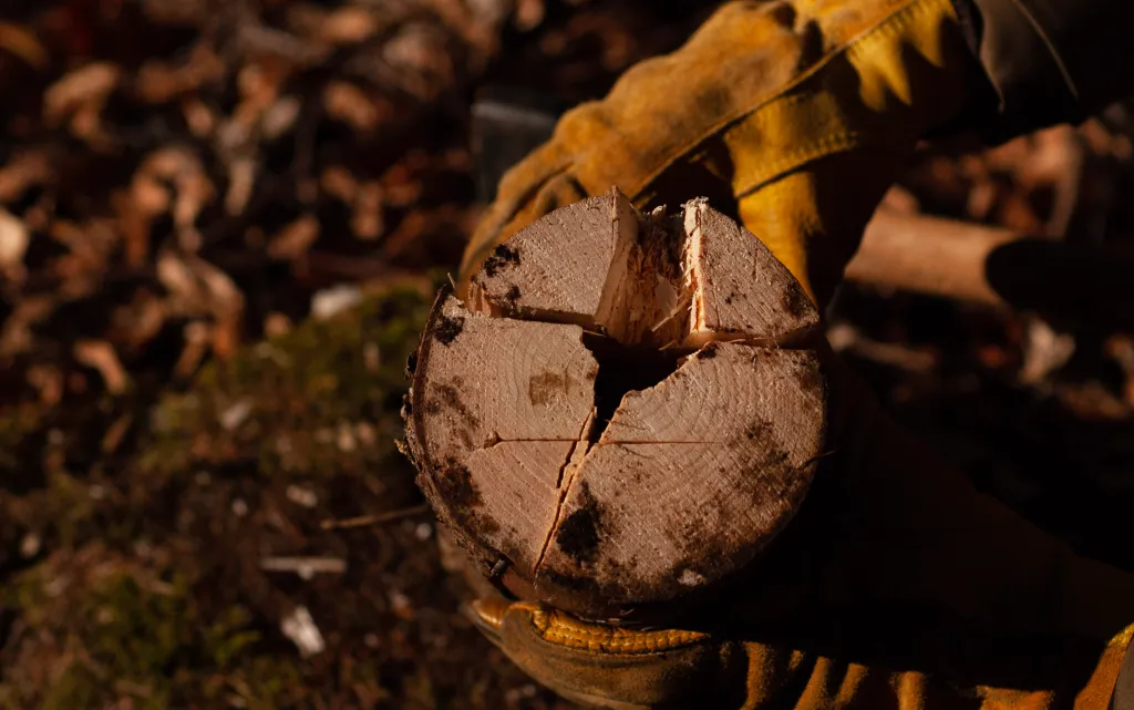 (How to split very thick tree trunks with a small axe, which I will describe in detail in another video.)