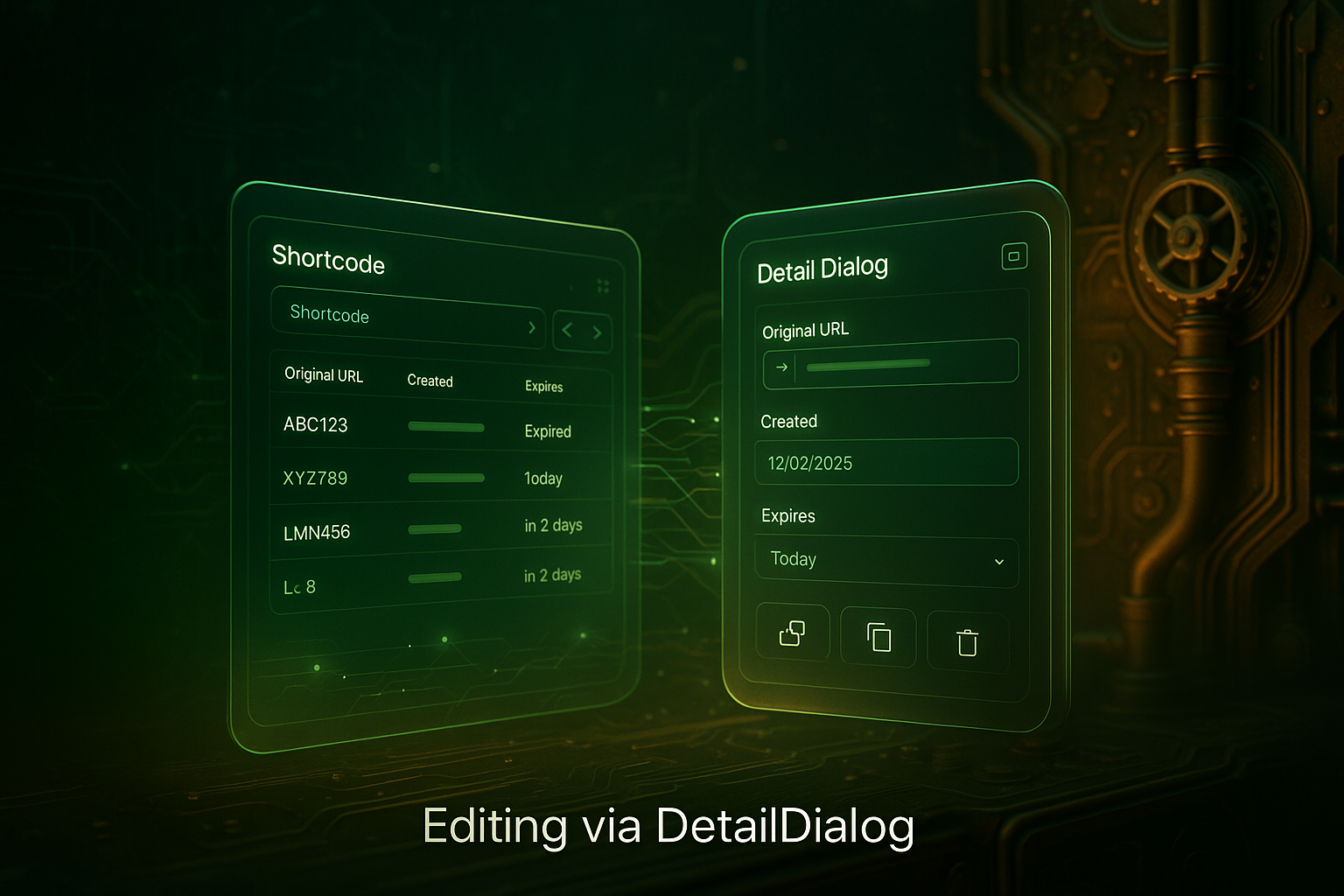 What has happened so far… # In the previous part, the URL shortener overview was significantly expanded. The starting point was the realisation that the last UI was heavily optimised for single operations and thus quickly reached its limits as soon as larger volumes of shortlinks needed to be managed. To resolve this bottleneck, the grid was consistently switched to multiple selection, creating the technical basis for actual mass operations.