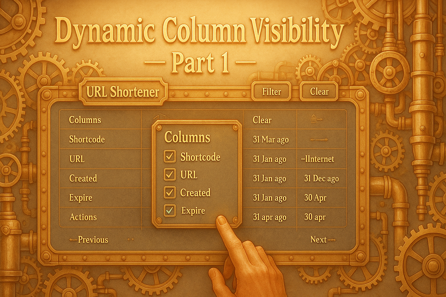 From observer to designer: User control at a glance # With the fourth day of the Advent calendar, the perspective on the application changes fundamentally. While in the previous expansion stages users reacted primarily to prepared structures, an element of active design is now being added. The “Overview” has so far been a central mirror of the system state: It showed all saved short links, allowed them to be filtered and provided an in-depth insight into individual objects with the detailed dialog. But the structure and visibility of the columns were immutable up to this point. The user always saw the selection that the developer had defined as meaningful. With the introduction of dynamic column visibility, this state is removed.